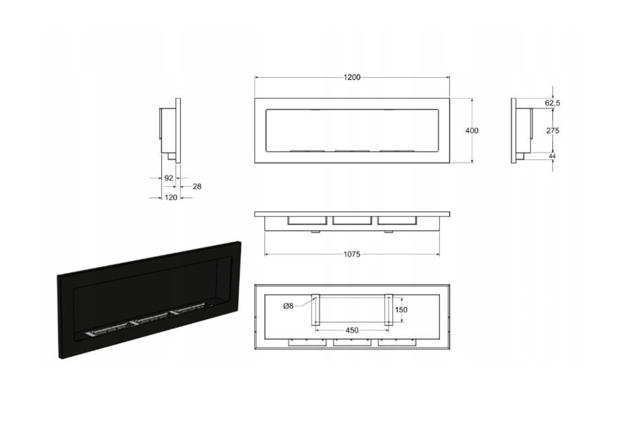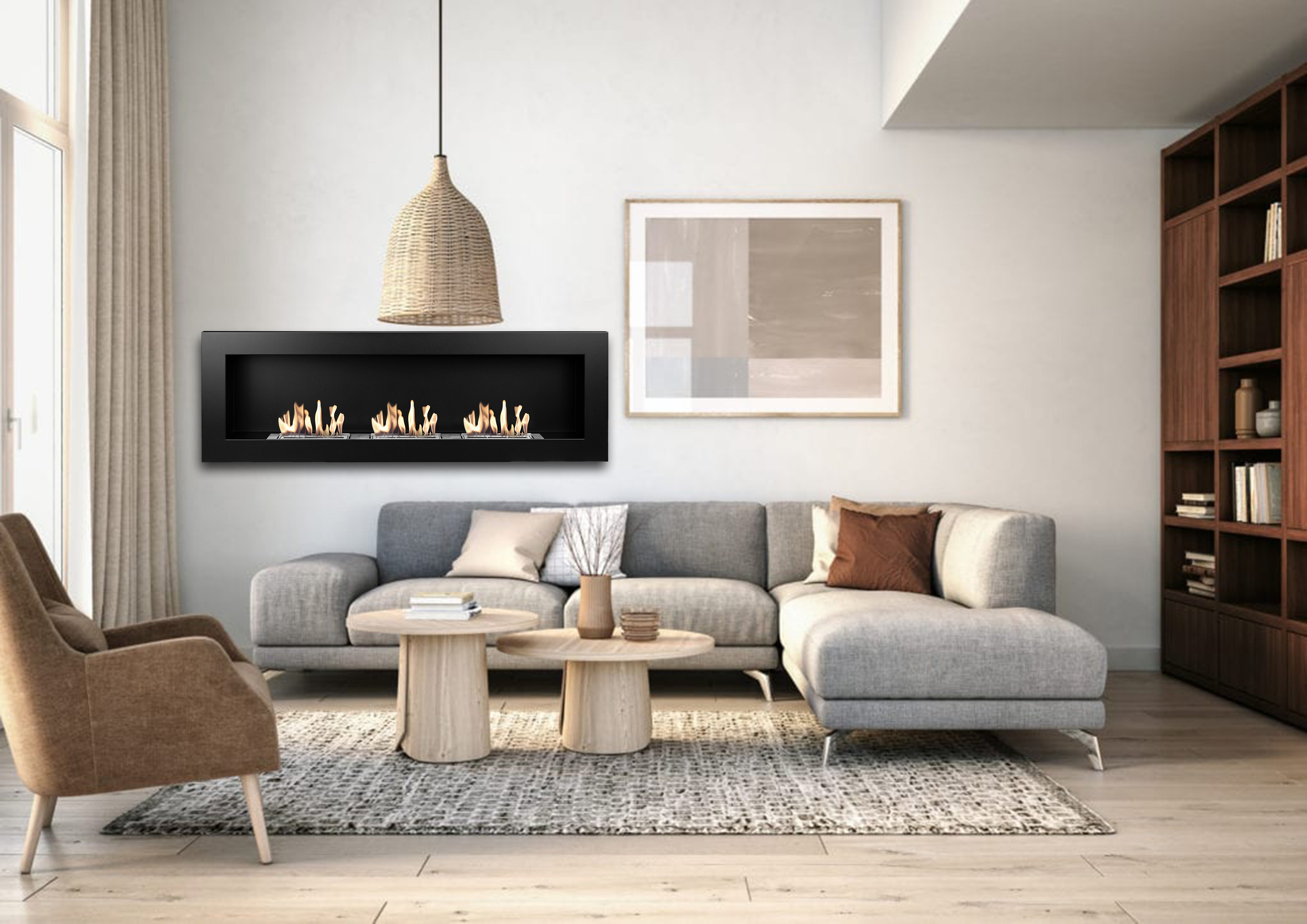 Brænderkapaciteten i denne model er 1L når alle tre brandkar fyldes. Som ved øvrige modeller er der sørget for hurtig og nem montering. Biopejsen hænges op ved hjælp af en monteringsliste inkluderet i sættet.